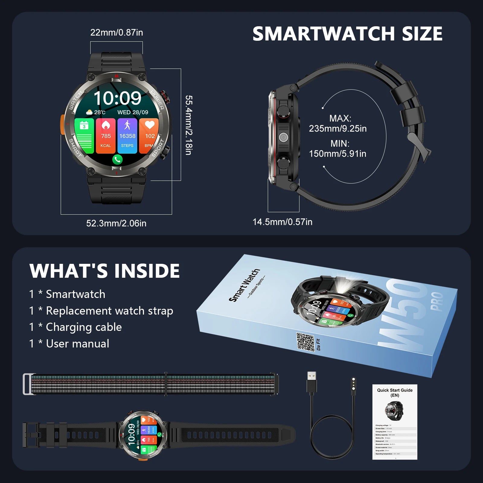 2025 New Blackview W50pro Waterproof Smartwatch with LED Flashlight