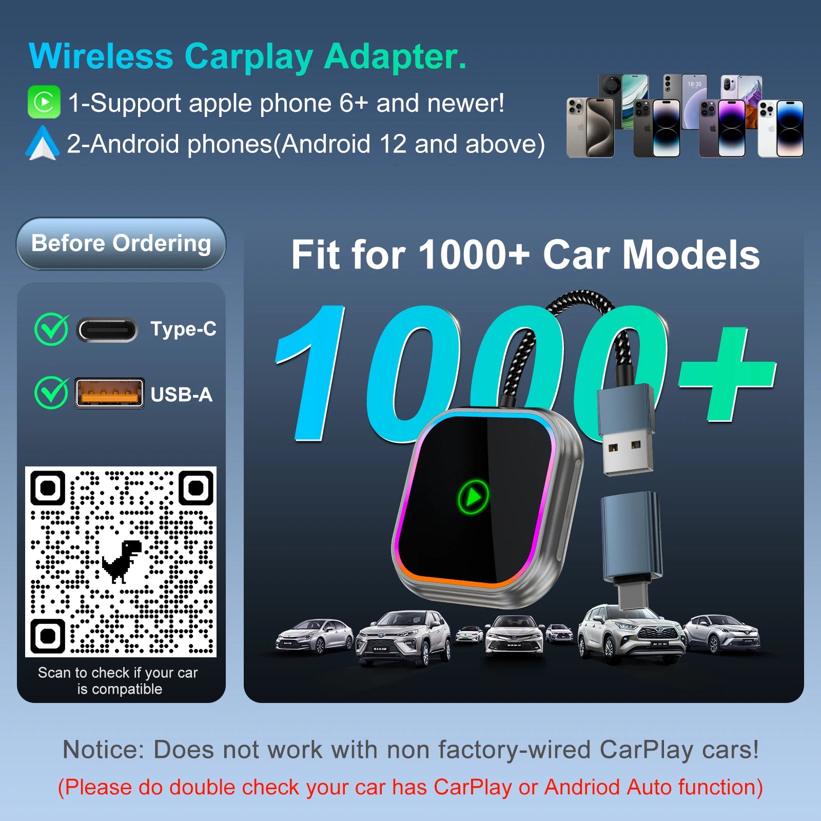 2025 New iPhone Wireless Carplay Adapter Mini Android Auto Adapter Plug & Play Apple Carplay