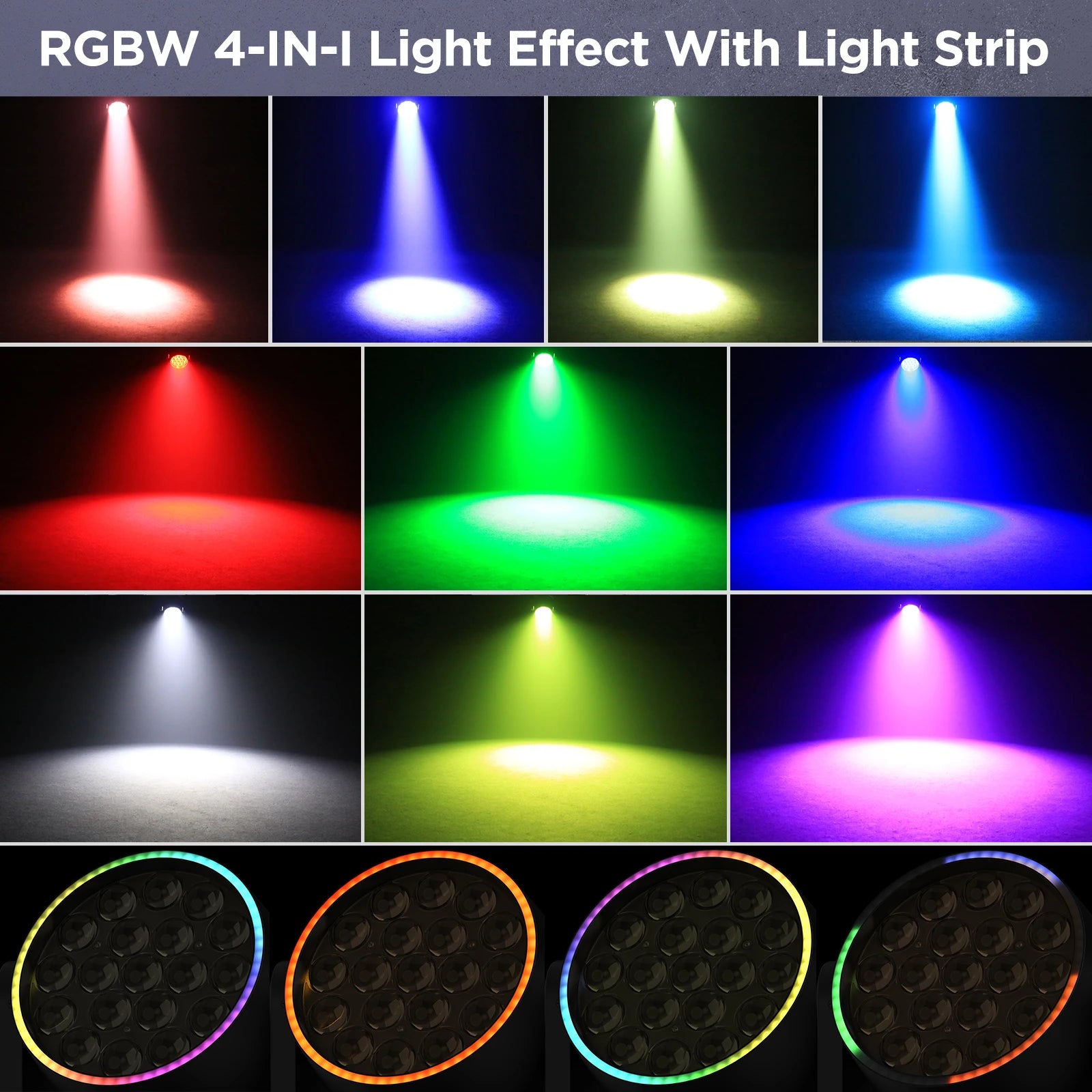Light source: 19PCS 8W RGBW LEDs + 60PCS 0.2W 5050RGB LEDs