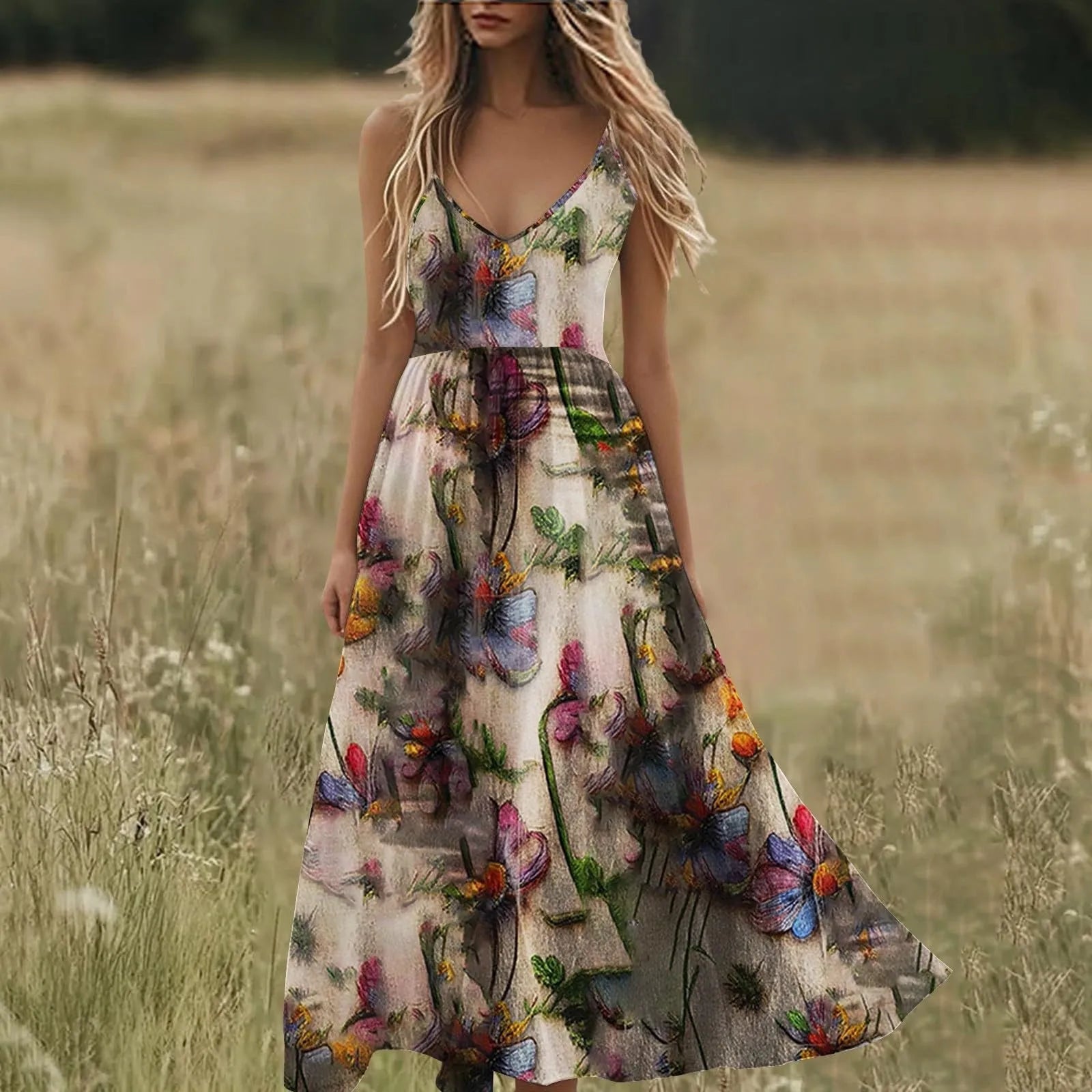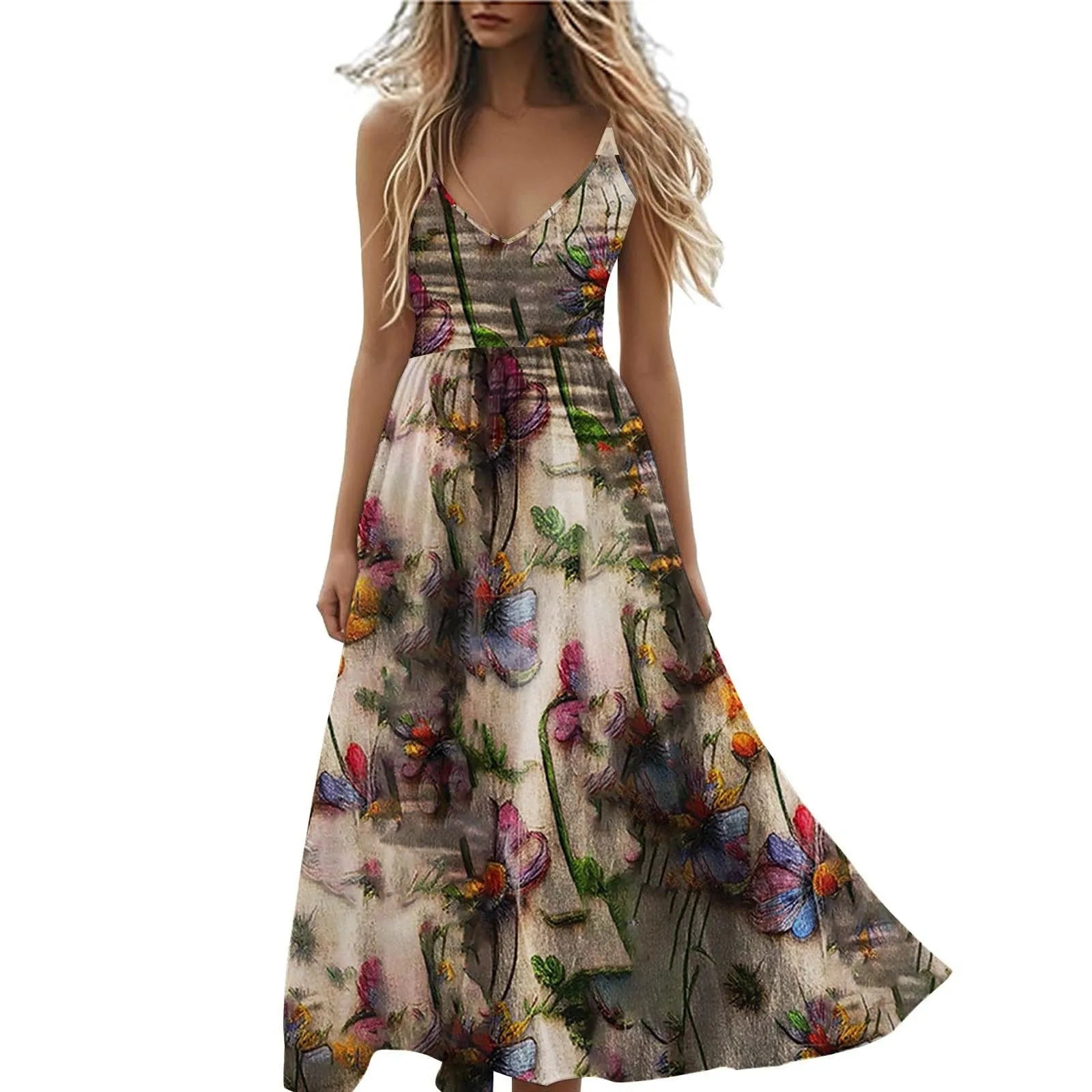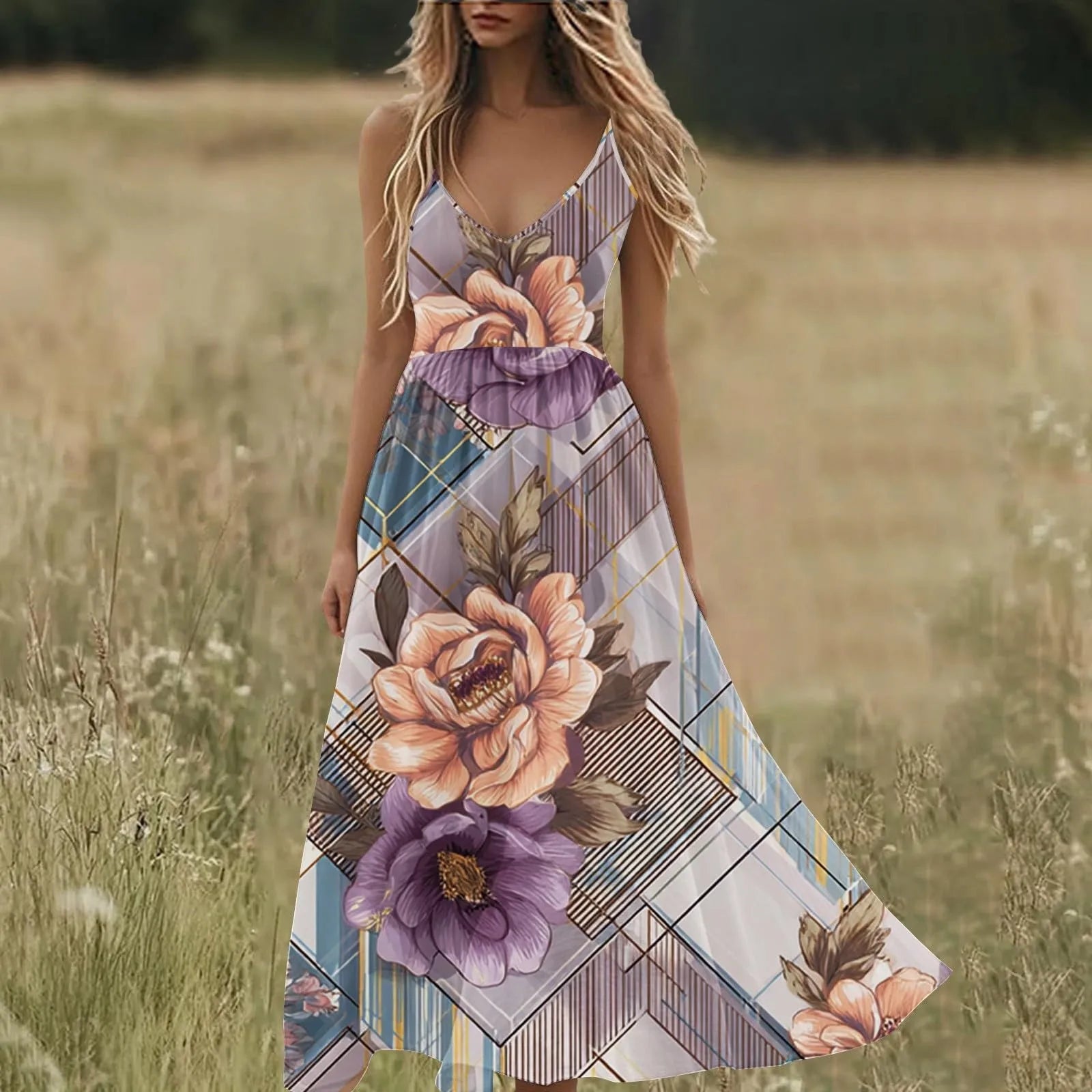 Boho Summer Dresses V Neck Floral Printed Sundresses, Beach Trendy Airy Dresses