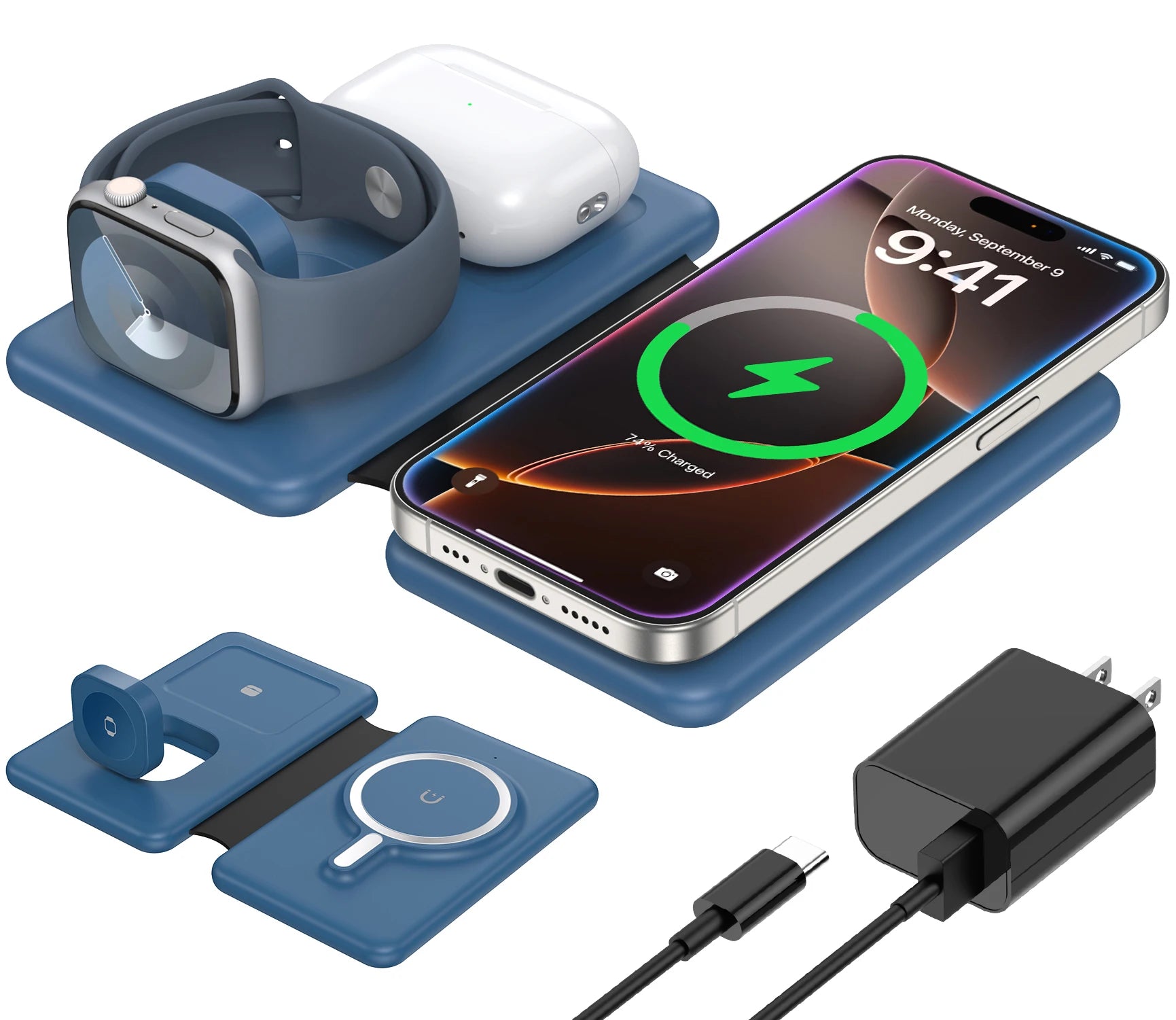 Cell Phone Wireless Charger - 3-in-1 Travel Charging Station
