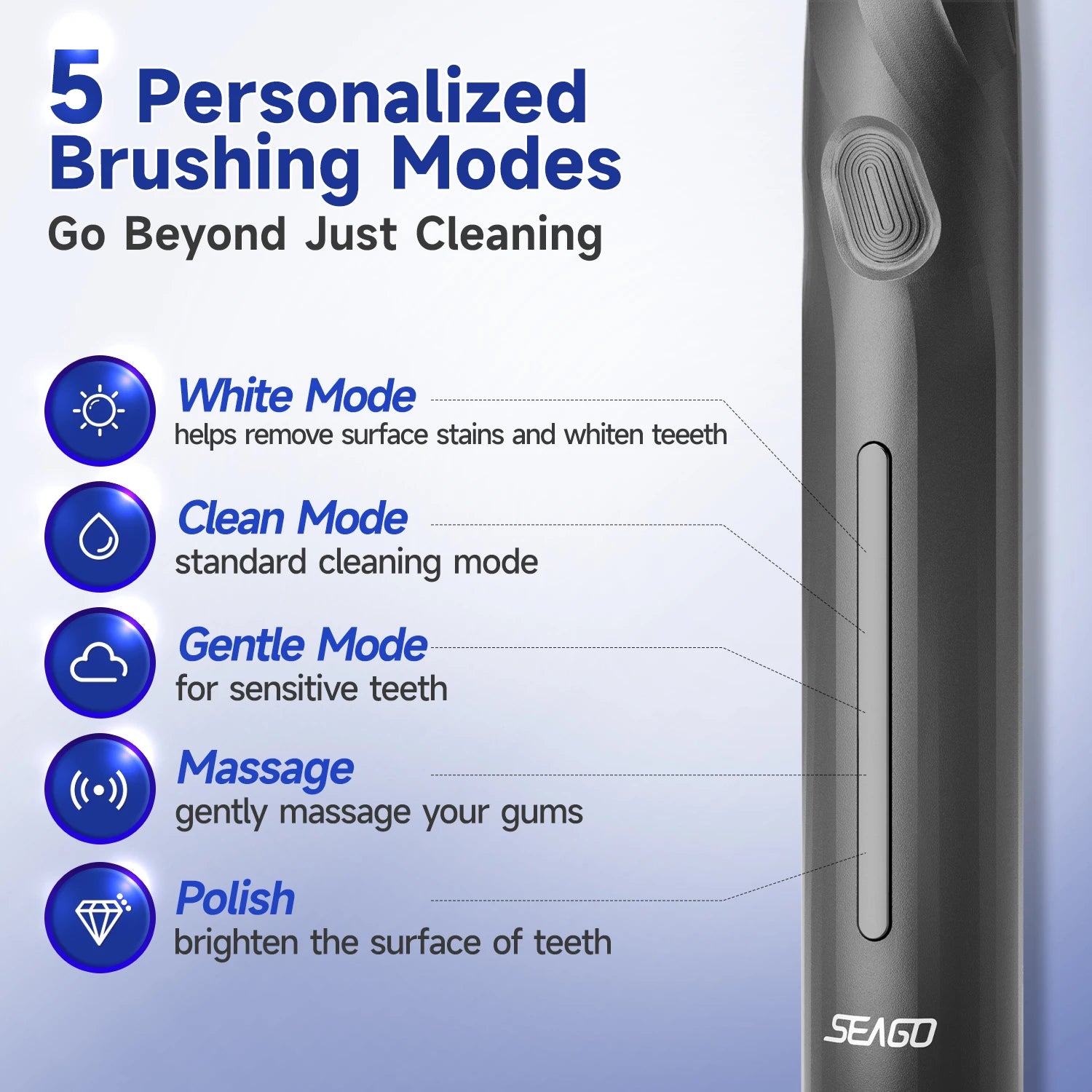 Electric Toothbrush with 8 Soft Bristle Heads for Adults, Pressure Sensor,