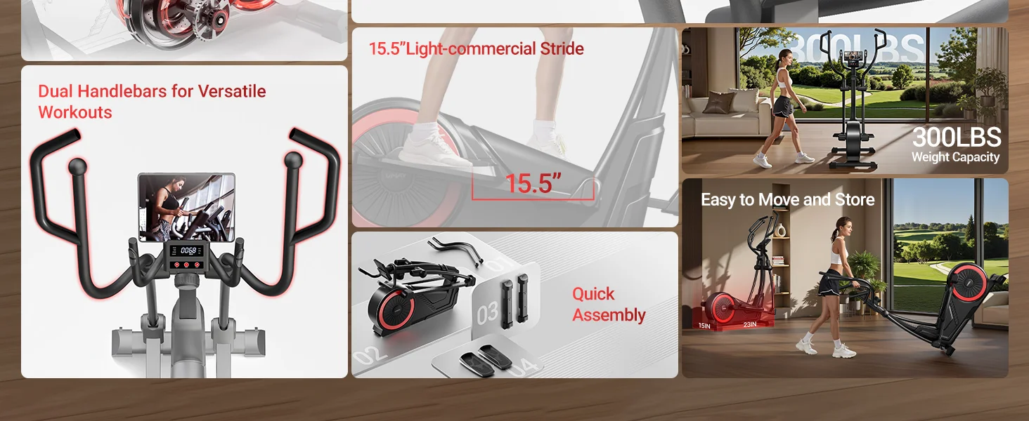 Silent Powerhouse:Say goodbye to noisy workouts! Equipped with an ultra - quiet magnetic drive system, this elliptical machine ensures that your workout won't disrupt anyone around you. Whether you're an early - bird exerciser or prefer to work out late at night, the silent operation allows you to focus on your fitness goals without any distractions