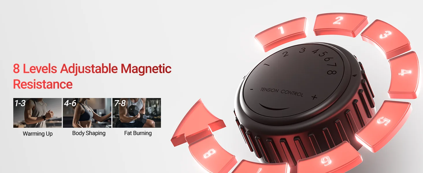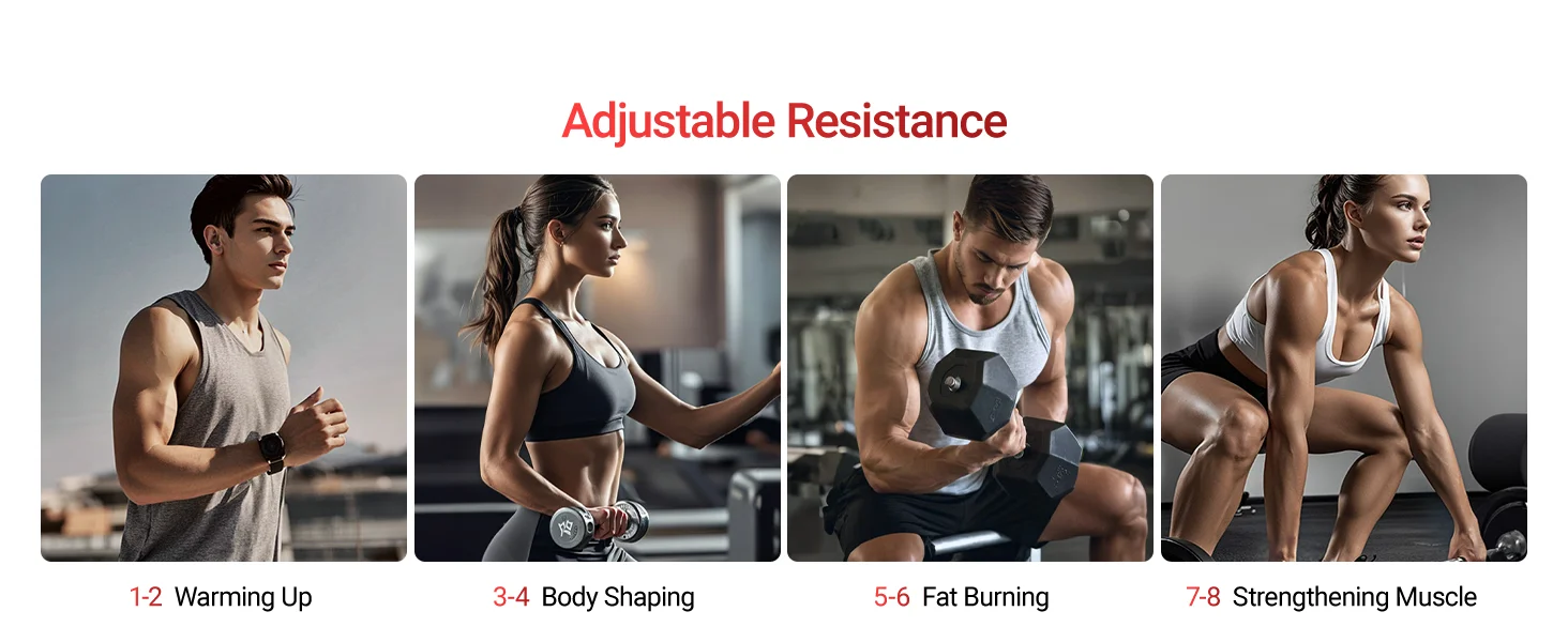 RESISTANCE Customizable Challenges: With 8 levels of resistance adjustment, our elliptical caters to users of all fitness levels. Beginners can start with a lower resistance to build up stamina, while more advanced users can crank up the resistance for a more intense, muscle - toning workout