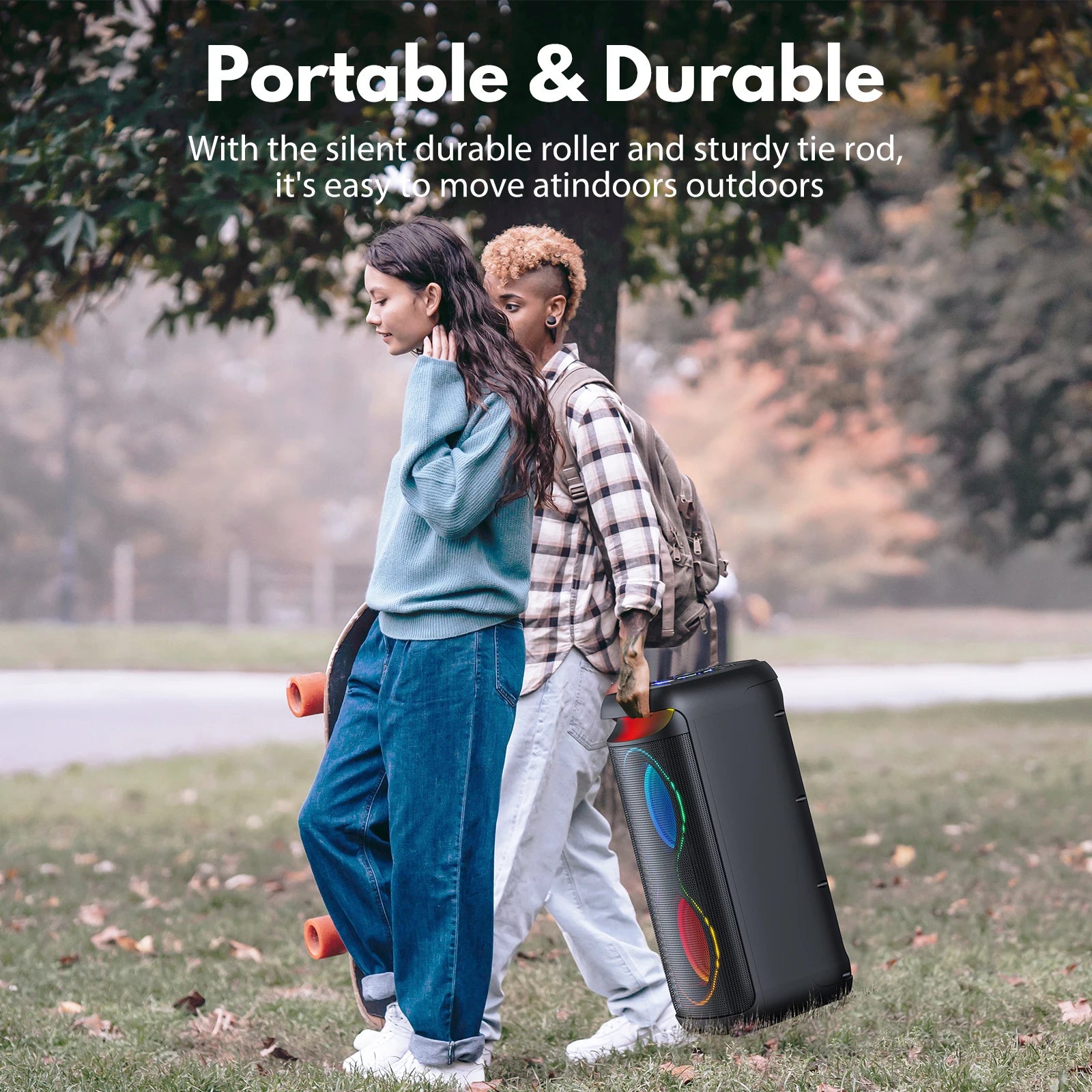 JYX Large Party Speaker, Wireless Bluetooth Speaker with Microphone, LED Party Light