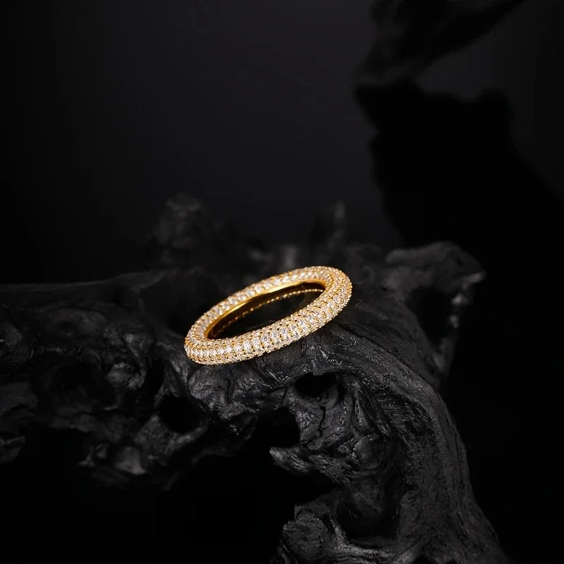 One piece of S925 sterling silver eternity ring with full moissanite stones, gold-plated in 18K gold,