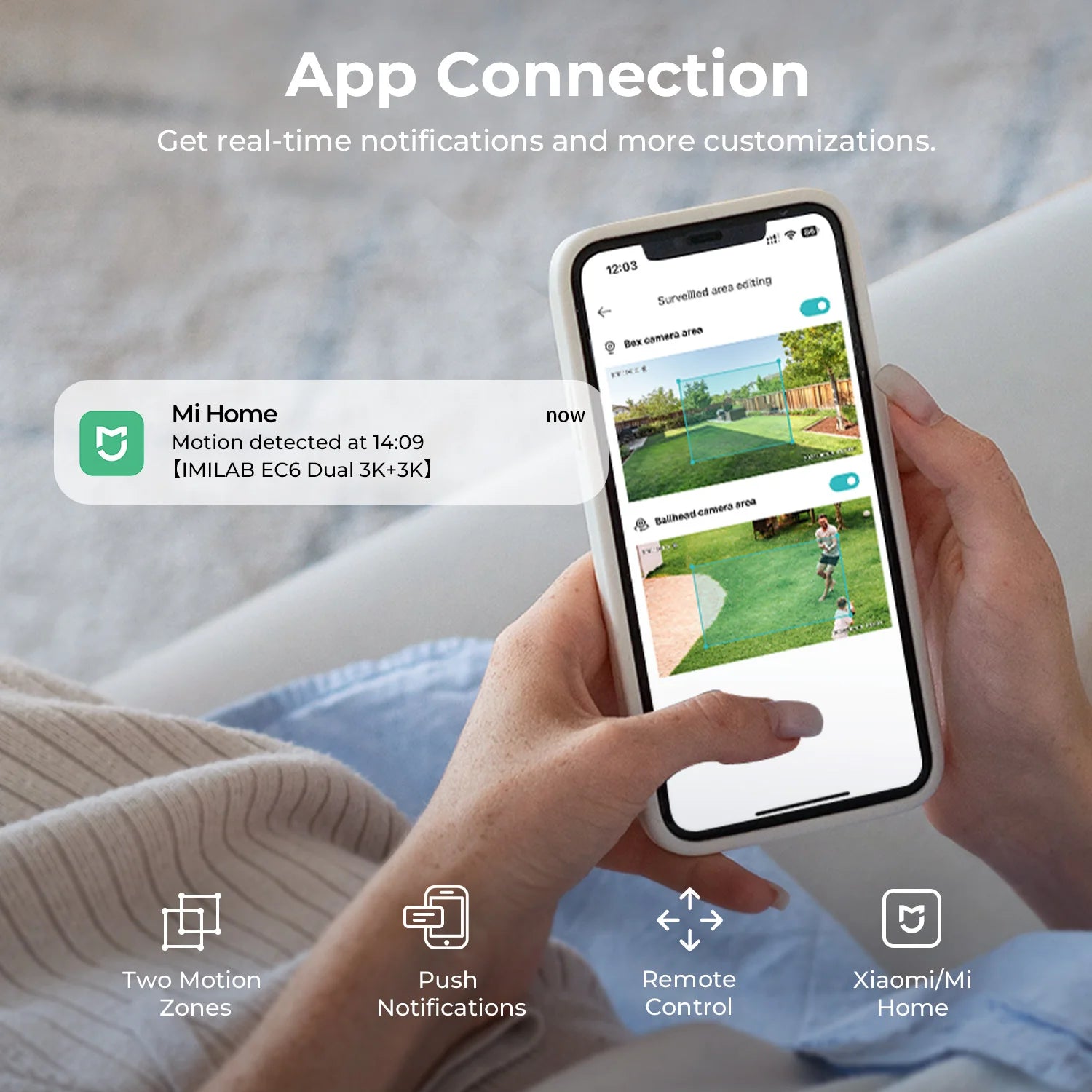 【Intelligent Deterrence for Peace of Mind】 Just in case you aren't near your smartphone, EC6 Dual automatically deters suspects using a siren, flash, or even a custom voice alert.* These are all built-in features triggered by motion detection without the need for paid subscriptions. *An update will be available in the software soon