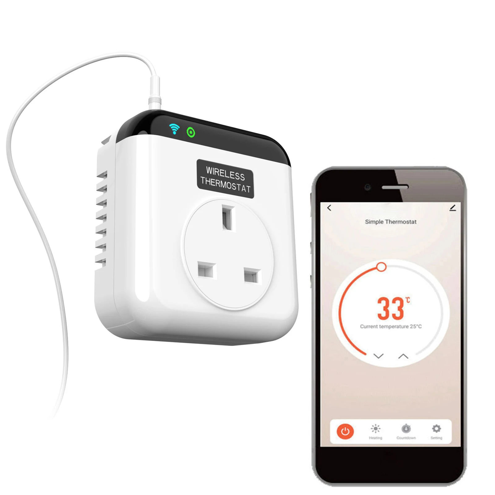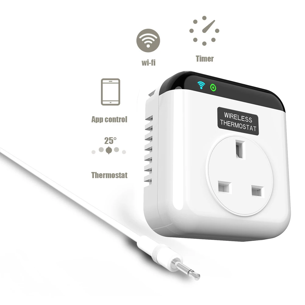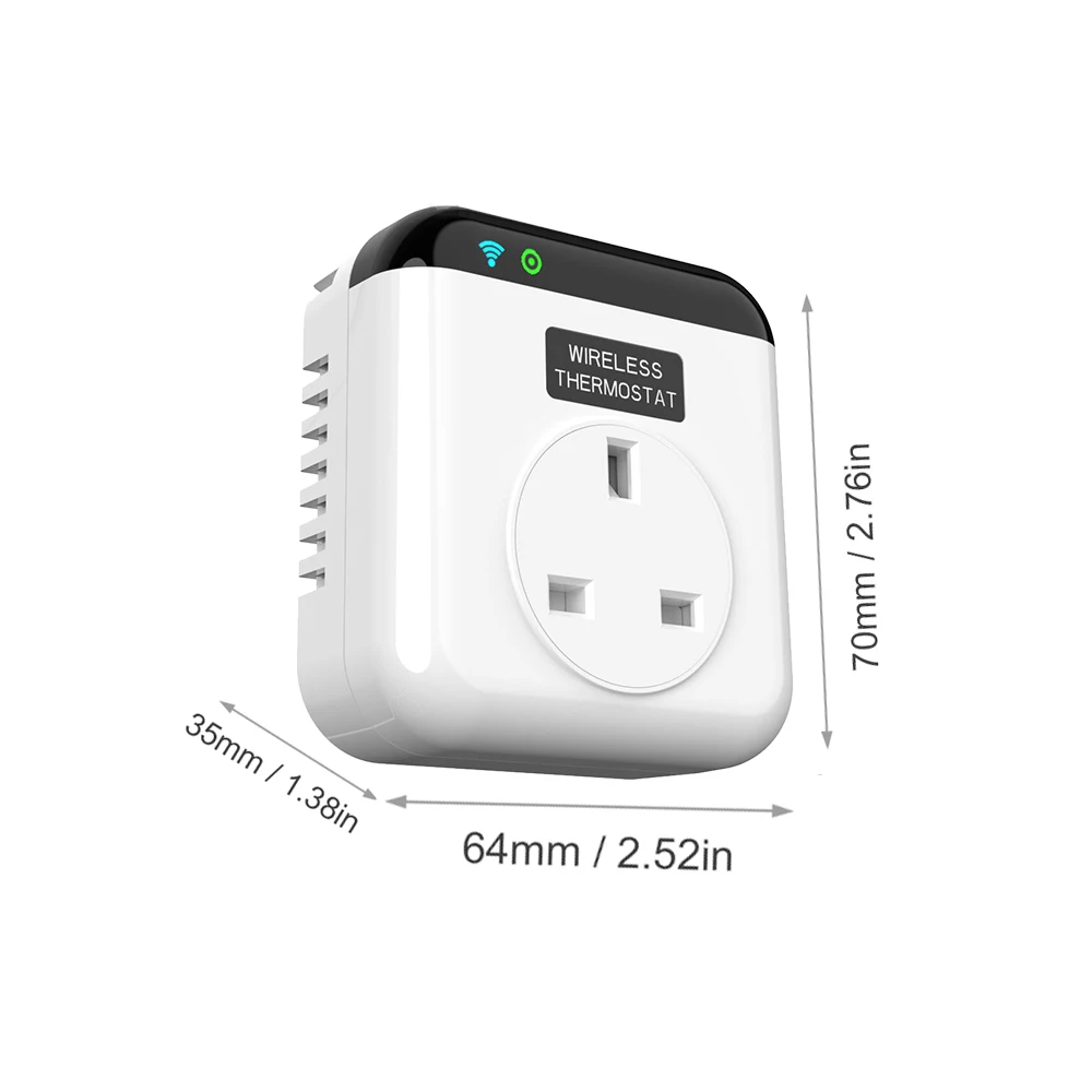 The product is an app-controlled, smart, programmable thermostat that helps you save energy and stay comfortable. It's compatible with most heating or cooling applications with a plug, convenient and practical to use, bringing you smart daily life.