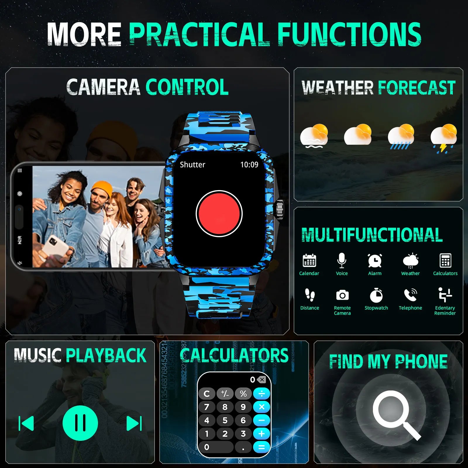 Smart Watch 3ATM Waterproof Men 1.96" KT71 Fitness Tracker Heart Rate Bluetooth
