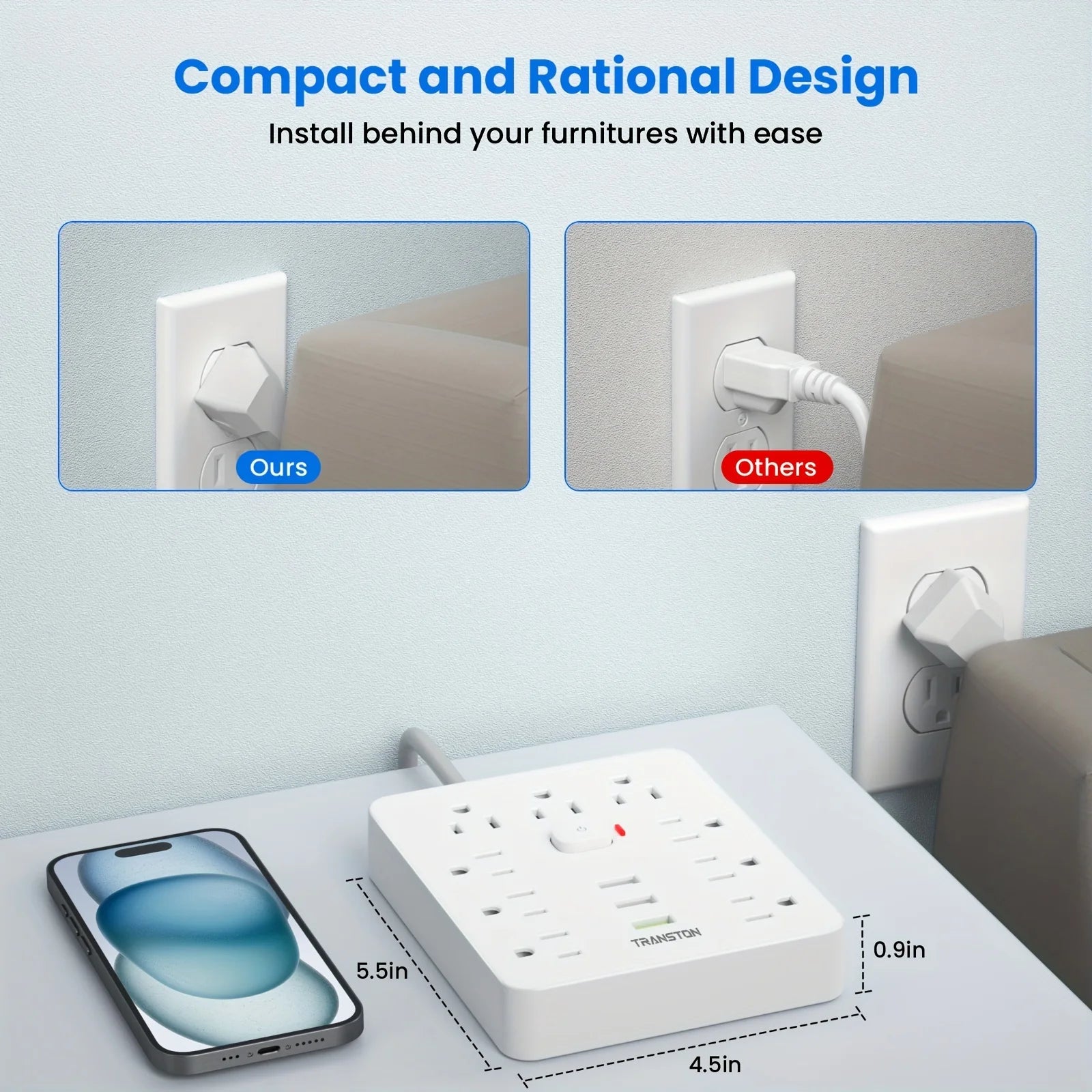 TRANSTON Power strip with Surge Protector, 9 power strip 3 USB Ports,