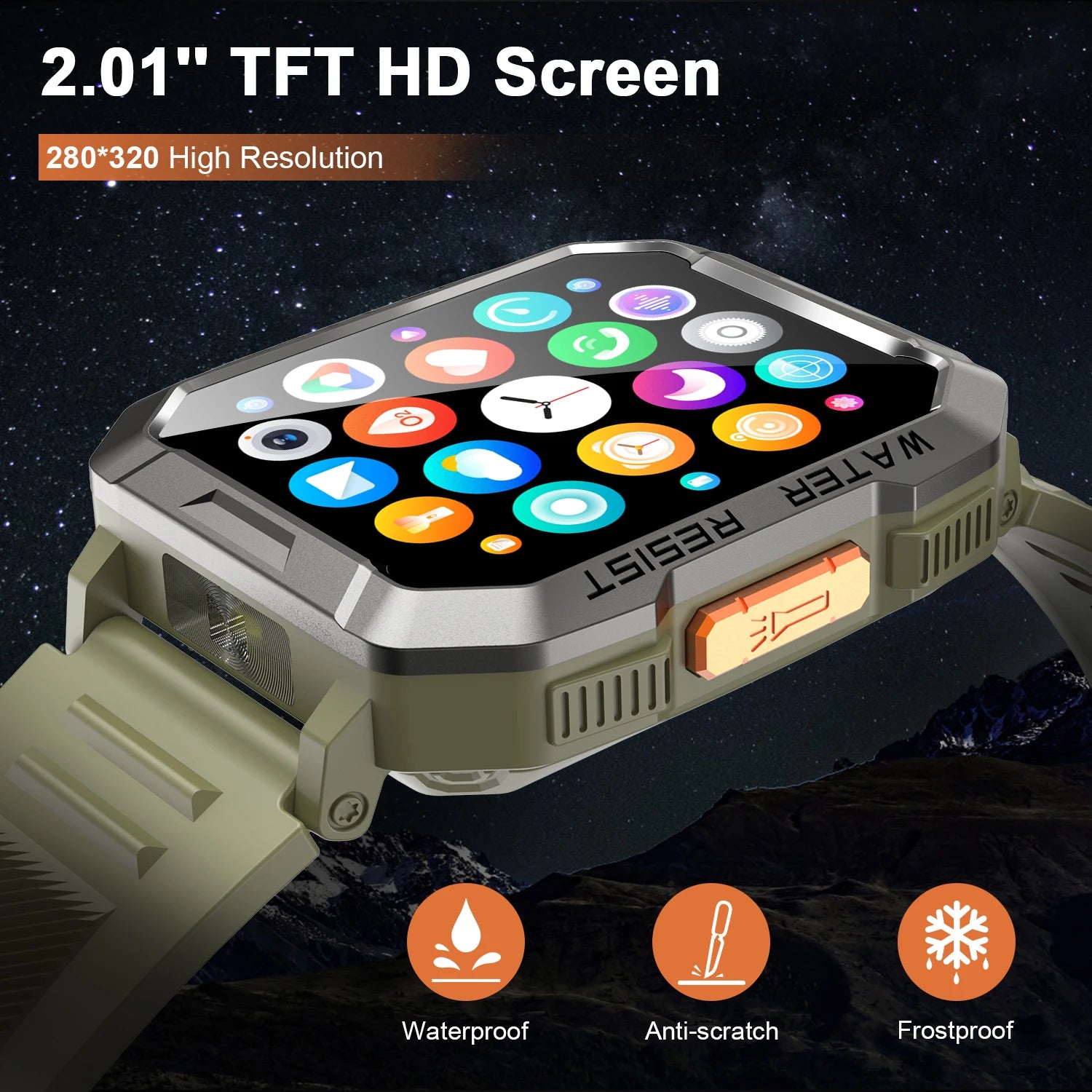 Waterproof Smart Watch 2.01'' HD Display 900mAh Large Battery Smartwatch with Emergency Lighting for Women Men