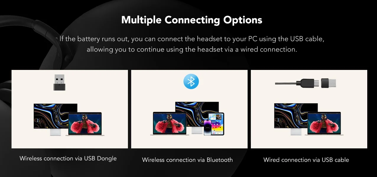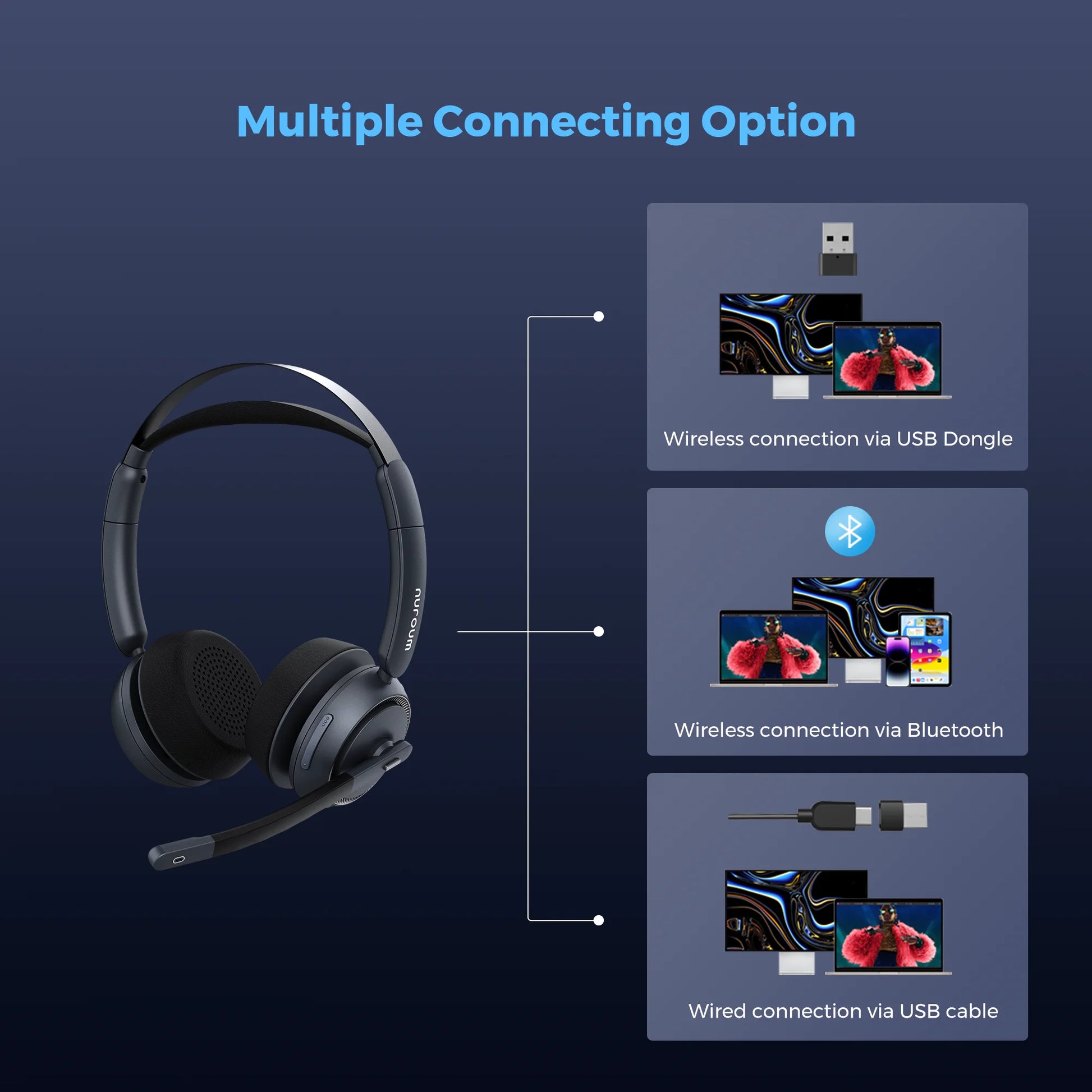 Wireless AI Noise Cancellation Headset With Charging Stand Mics Bluetooth USB